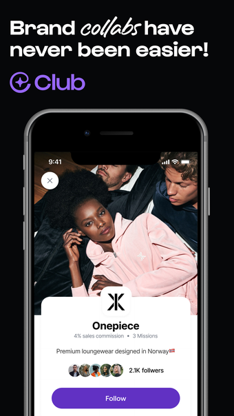 Club เป็นแอปพลิเคชันที่เป็นไลฟ์สไตล์ที่มีให้บริการบน iPhone ซึ่งช่วยให้ผู้ใช้สามารถลงทะเบียนและสมัครเป็น Brand Ambassadors สำหรับแบรนด์และองค์กรต่าง ๆ ได้ เป็นผลงานจาก Brandbassador Ltd แอปฟรีนี้ให้แพลตฟอร์มให้ผู้ใช้มีโอกาสที่จะมีส่วนร่วมกับภารกิจที่ได้รับการอนุมัติจากแบรนด์ต่าง ๆ ซึ่งภารกิจเหล่านี้สามารถเป็นการให้คำติชม การเข้าร่วมงาน หรือการส่งเสริมแบรนด์ในแพลตฟอร์มโซเชียลมีเดียต่าง ๆ